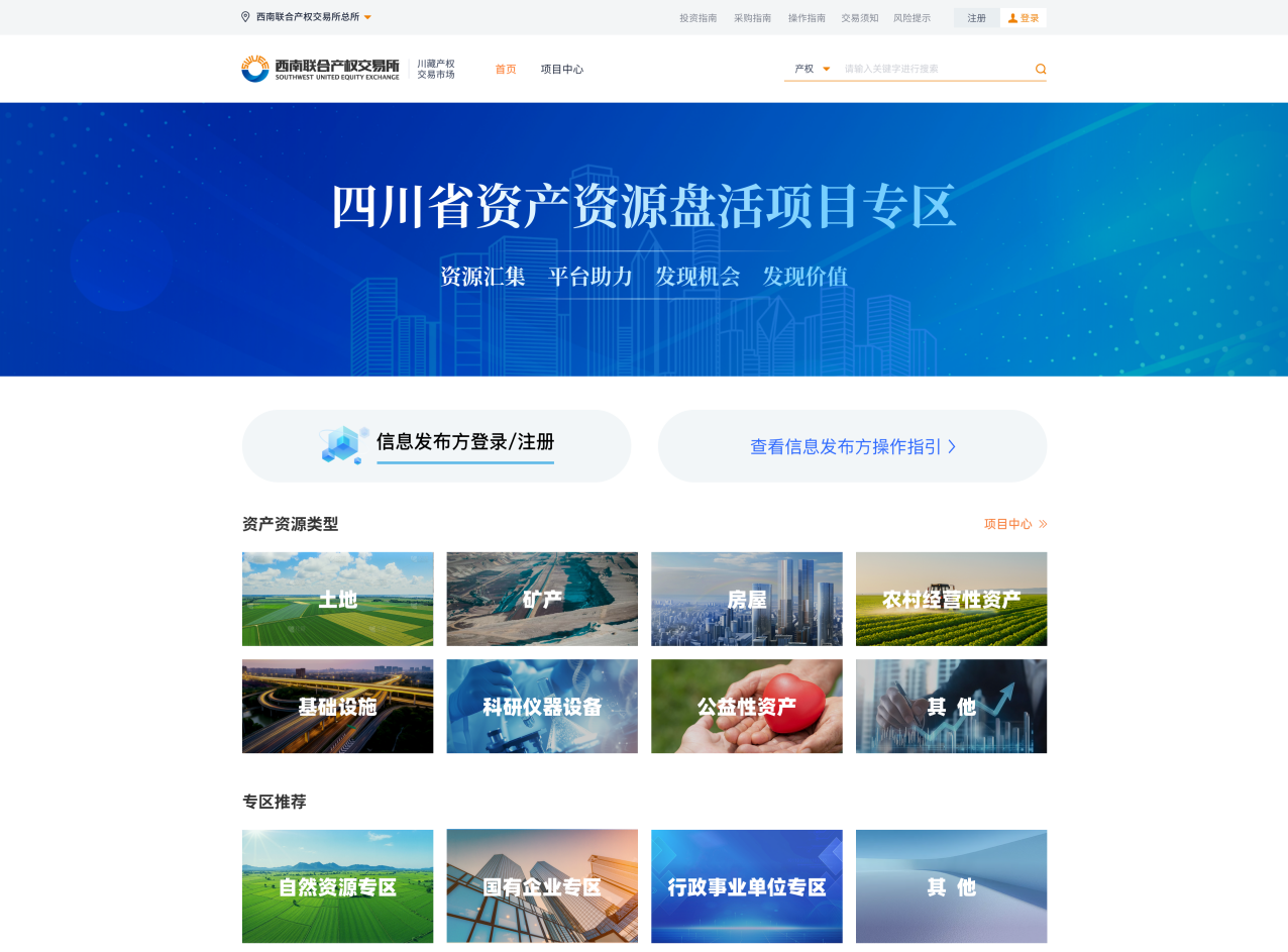 川發平臺2025-11-10西南聯合產權交易所“四川省資產資源盤活項目專區”正式上線為深入貫徹落實省委、省政府關于推進閑置低效資產資源盤活利用工作的相關決策部署,在省財政廳、省國資委的統籌推動與全程指導下,由西南聯合產權交易所搭建的“四川省資產資源盤活項目專區”正式上線。閱讀全文 -