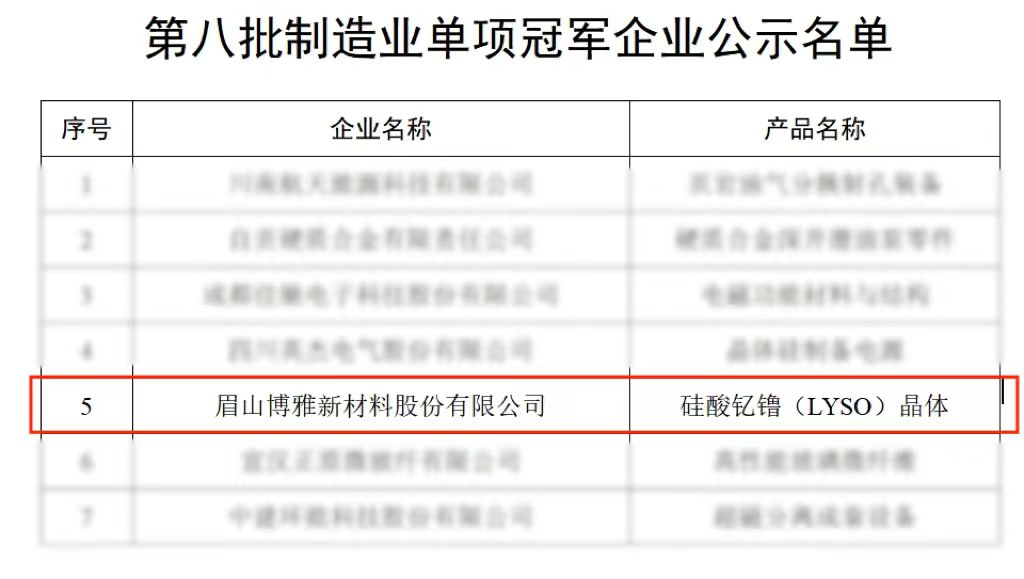 近日,工業和信息化部完成了第八批制造業單項冠軍企業遴選認定工作,川發引導基金旗下已投企業眉山博雅新材料股份有限公司成功入選。