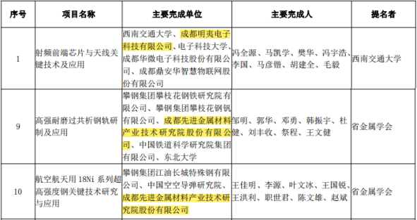 獲獎項目涉及新材料、高端裝備制造、通信芯片、智能飛行器等戰略性新興產業領域。其中,直投項目成都先進金屬材料產業技術研究院股份有限公司獲得一等獎1項、二等獎2項、三等獎3項,數字經濟發展基金投資的德陽天元重工股份有限公司獲得一等獎1項,5G基金投資的成都明夷電子科技有限公司獲得二等獎1項,軍民融合基金投資的四川騰盾科技有限公司、集安基金投資的眉山博雅新材料股份有限公司各獲三等獎1項。