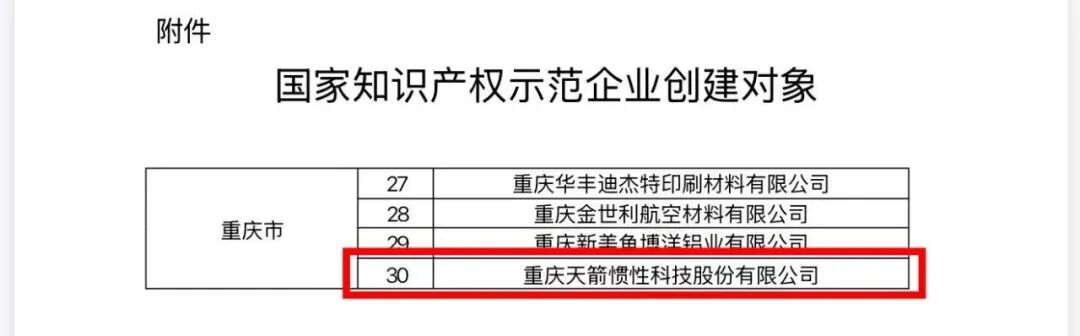(天箭慣性獲評“2025—2027年國家知識產權示范企業創建對象)