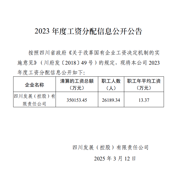 2023年度工資分配信息公開公告